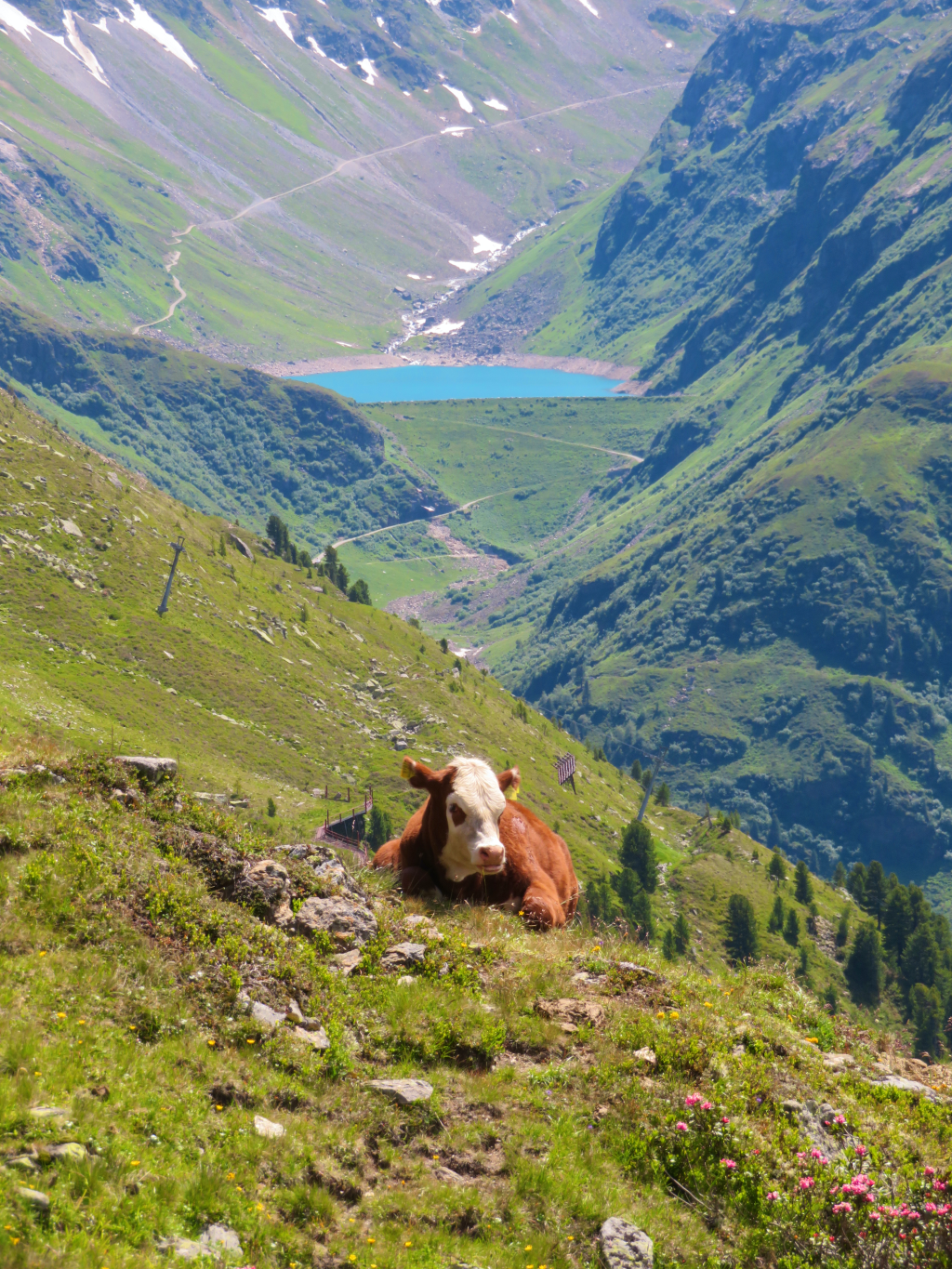 Even in the middle of summer, snow settles here at the Moosbach lake in Tirol.